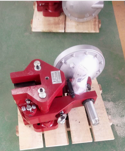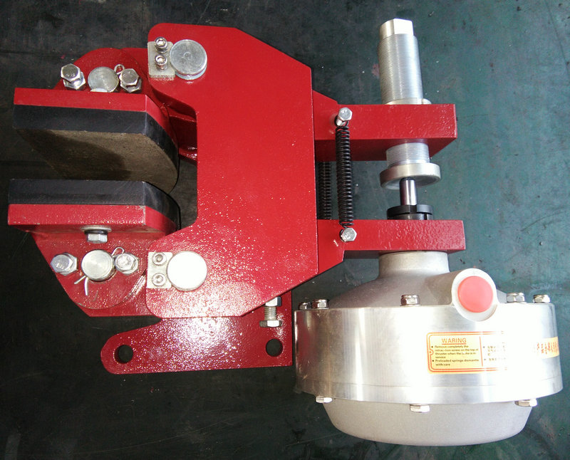 制動(dòng)閘塊自動(dòng)隨位裝置,以確保制動(dòng)塊在整機(jī)開合運(yùn)作狀態(tài)下與主機(jī)制動(dòng)盤上下間隙均等。