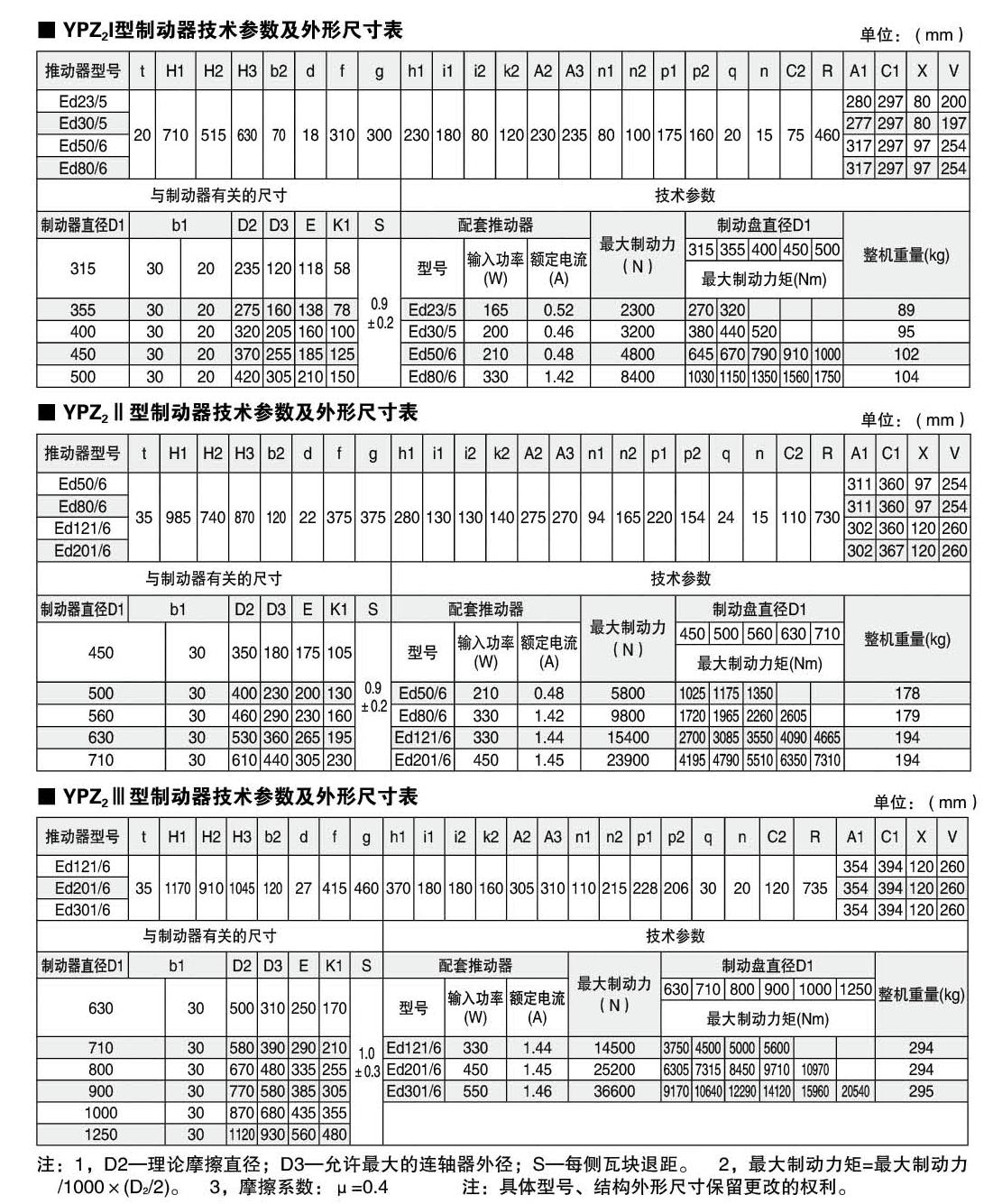 應(yīng)用:YPZ2ⅠⅡⅢ系列電力液壓盤(pán)式制動(dòng)器是一種高性能、多功能的先進(jìn)產(chǎn)品。由于其具有瓦塊退距自動(dòng)均等,襯墊磨損自動(dòng)補(bǔ)償?shù)认冗M(jìn)功能,使用過(guò)程中維護(hù)非常便捷。通過(guò)增設(shè)各種限位開(kāi)關(guān),可給主機(jī)PLC提供所需要的聯(lián)鎖保護(hù)信號(hào)。非常適合各種現(xiàn)代的大型專用裝卸機(jī)械、起重運(yùn)輸機(jī)械、冶金設(shè)備、礦山設(shè)備及工程機(jī)械中各種機(jī)構(gòu)的減速和維持(停車(chē))制動(dòng)。符合標(biāo)準(zhǔn):電力液壓盤(pán)式制動(dòng)器符合DIN15435標(biāo)準(zhǔn)和JB/T7020-2006標(biāo)準(zhǔn)。配套符合DIN15430標(biāo)準(zhǔn)的Ed系列推動(dòng)器。主要特點(diǎn):▲ 聯(lián)鎖